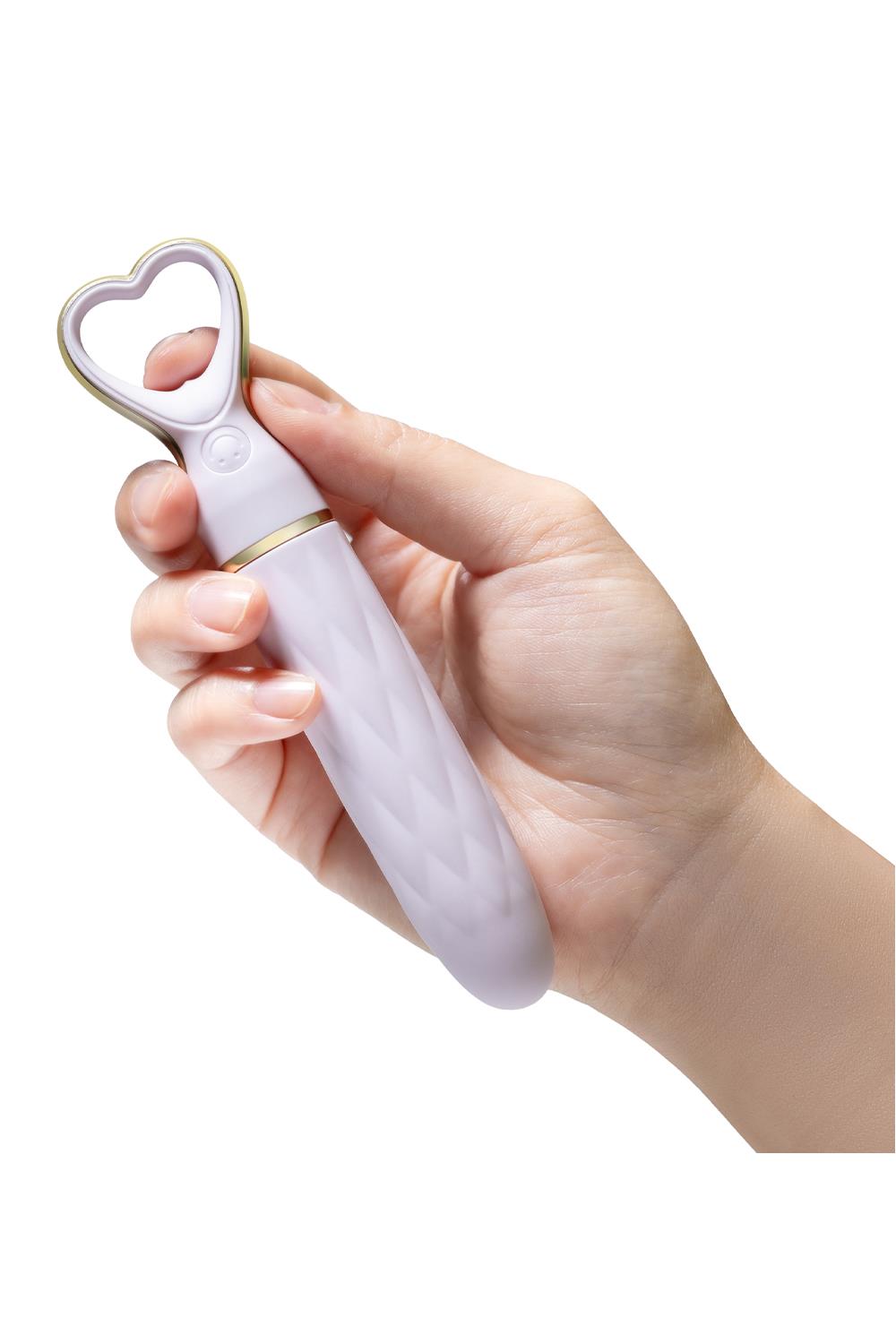 Slatki, šik i sofisticirani, Delice Heartthrob je vibrator dizajniran da razmazi vaša čula. Njegov glatki, suženi vrh pruža ciljanu, preciznu stimulaciju, sa 10 raznovrsnih režima vibracije - uključujući 5 brzina i 5 obrazaca - kako biste istražili svoje zadovoljstvo, sve na dohvat ruke. Napravljen od vrhunskog, platinasto očvrslog silikona Puria®, bezbednog za telo, sa luksuznom UltraSilk® završnom obradom, Heartthrob je neodoljivo mekan i nežan na koži. Drška u obliku srca, ukrašena zlatom, dodaje dašak elegancije vašem vremenu za igru. Otporan na prskanje i magnetni USB punjiv, ovaj vibrator osigurava da je vaše zadovoljstvo uvek nadohvat ruke. Punjenje se preporučuje preko laptopa. Prelepo dizajniran za samostalno uživanje ili kao pažljiv poklon, lagani i spremni za putovanja, Heartthrob je savršen pratilac gde god da vas strast odvede. Preporučujemo upotrebu lubrikanta na vodenoj bazi. Ukupna dužina proizvoda je 14cm, a dužina za umetanje je 8.3cm. Širina iznosi 2.3cm.